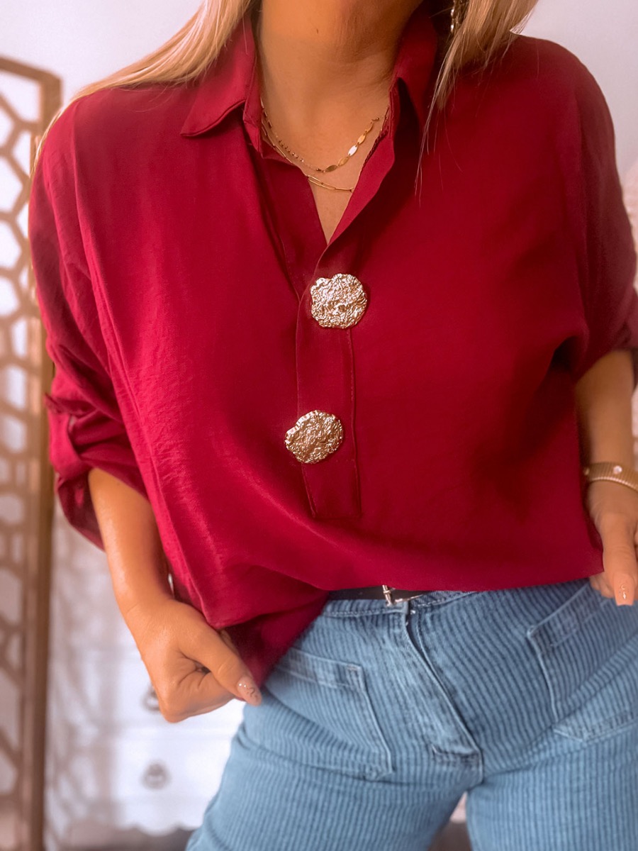 Découvre notre blouse femme élégante avec ses boutons bijoux amovibles. Une pièce tendance et chic, disponible en noir et bordeaux, parfaite pour sublimer tes looks du quotidien ou tes soirées.