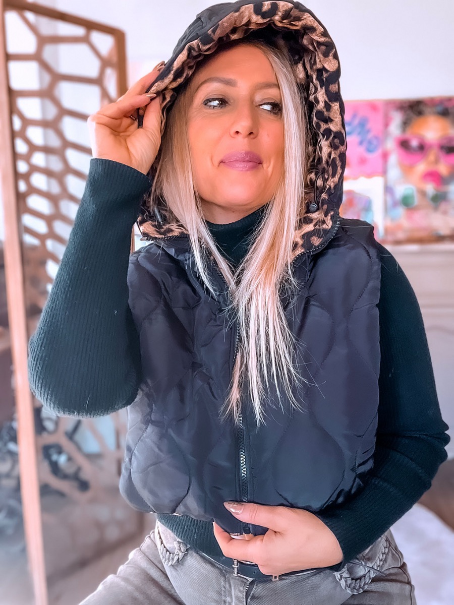 Capuche amovible réversible femme – Léopard & Noir – Accessoire tendance