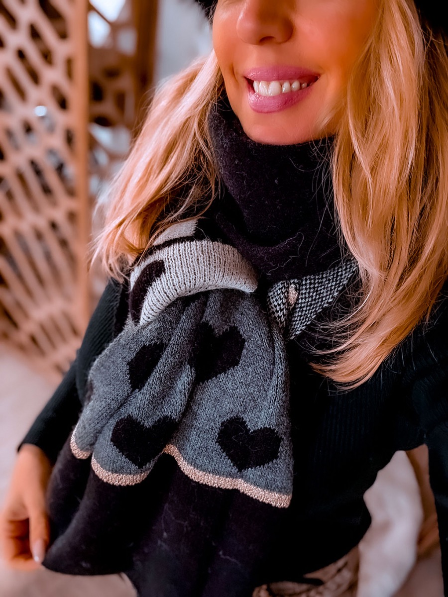 écharpe cœurécharpe chaude femmeécharpe gris noirécharpe hiver chicécharpe avec fil doréécharpe féminineécharpe tendance femmecadeau femme hiver