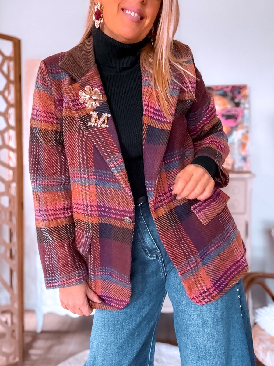 blazer femme, blazer carreaux, blazer velours, blazer bimatière, blazer automne hiver, veste carreaux femme, blazer oversize, blazer chic femme, saori boutique, blazer tendance 2025, blazer col velours