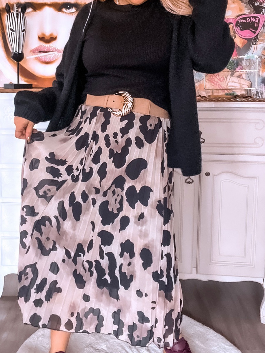 Ose le style sauvage et féminin avec notre jupe longue plissée à imprimé animalier 🐆.