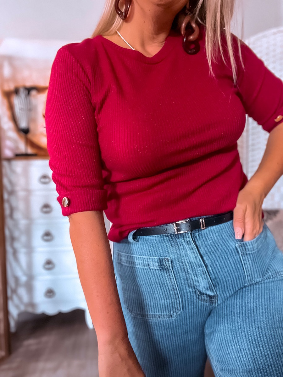 Apporte une touche de féminité et d’élégance à ton dressing avec ce top en maille fine et légèrement pailletée. Confortable et tendance, il se porte aussi bien pour une journée au bureau que pour une soirée habillée.